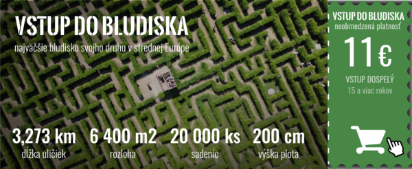 Zažite dobrodružstvo v bludisku Viktóriiných záhrad! Kúpte si vstupenky do bludiska Viktóriine záhrady online a vydajte sa na cestu plnú záhad, hádaniek a prekvapení. Čaká na vás najväčšie živé bludisko svojho druhu v strednej Európe s vyhliadkovou vežou, sochami a tematickými úlohami.